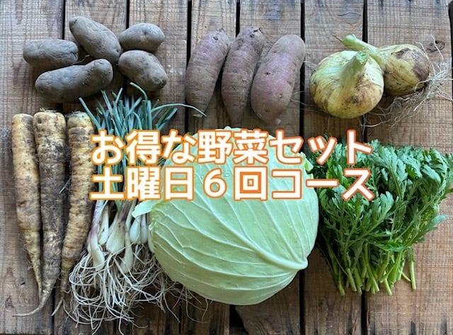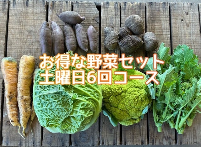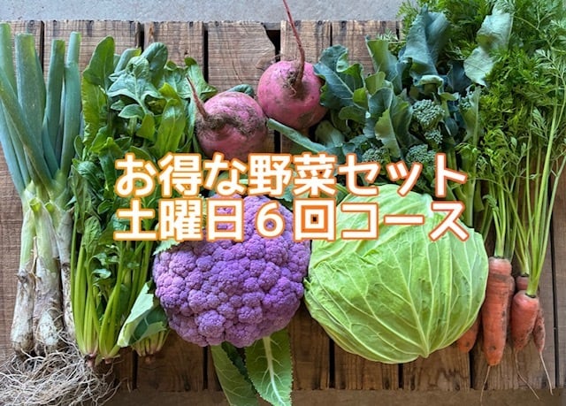 隔週土曜日にお届けする旬の野菜詰め合わせ6回コースです。単発セットよりも150円お得になっております。その時々の旬のお野菜が入ります。2名から3名さま向けのボリュームです。
